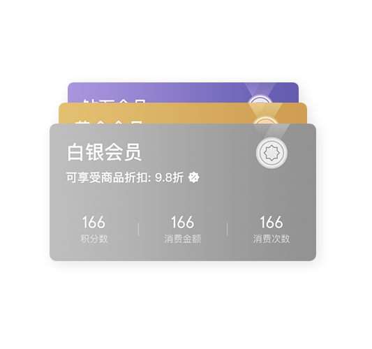 升級會員,盡享特權(quán)會員體系以積分,優(yōu)惠券,儲值消費方式鎖客,基于用戶畫像進行活動消息分組推送,實現(xiàn)會員客戶的精準化管理